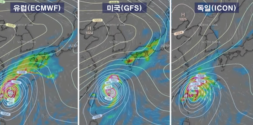 현재 태풍 끄라톤의 경로를 예측하는 수치 모델은 유럽 중기예보센터(ECMWF), 미국 해양대기청(GFS) 등 여러 기관에서 제시하고 있습니다. 이들 모델은 대체로 태풍이 북상하며 한반도 또는 일본 규슈 지역에 영향을 미칠 가능성이 크다고 예측하고 있습니다.