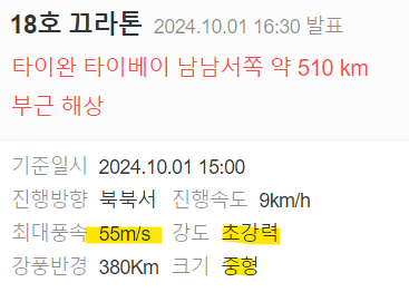 | 19호 태풍 바리자트 예상 경로 예측 철저한 대비 (4) | 2024.10.02 |