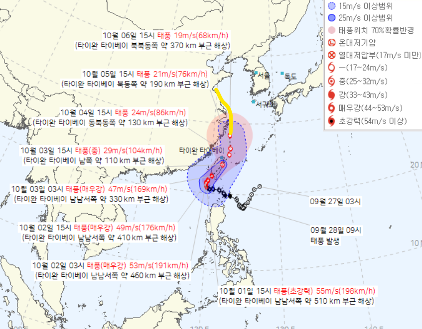 흥미로운 점은 이 태풍의 이동 속도가 매우 느리다는 것입니다. 시속 4km로 움직이고 있으며, 이는 사람이 걷는 속도와 비슷한 정도로, 태풍의 영향권이 장기간 지속될 가능성을 시사합니다.