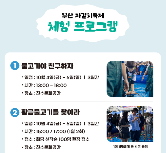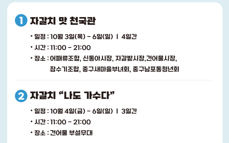 이번 포스팅에서는 자갈치축제의 일정, 주차 정보, 프로그램, 그리고 축제에서 놓치면 안 될 다양한 먹거리들까지 알차게 준비해보았으니, 함께 알아보시죠!