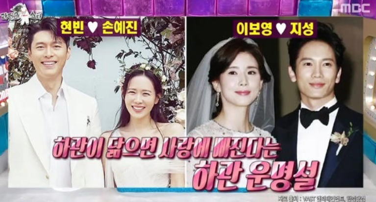 하관 운명설에 따르면, 사람들은 자신과 닮은 부분에서 호감을 느끼고, 이런 인연이 결혼으로 이어지기도 한다고 해요. 실제로 많은 스타 부부들 사이에서도 하관이 닮았다는 이야기를 쉽게 찾아볼 수 있습니다. 대표적인 예로 최근 결혼한 현빈과 손예진 부부가 이에 해당되죠. 또한, 김연아와 고우림, 지성과 이보영, 거미와 조정석 등 많은 스타 부부들이 '하관 운명설'의 사례로 거론되고 있습니다.
