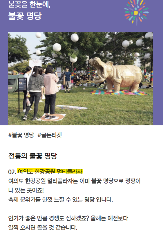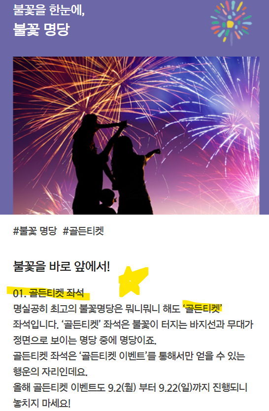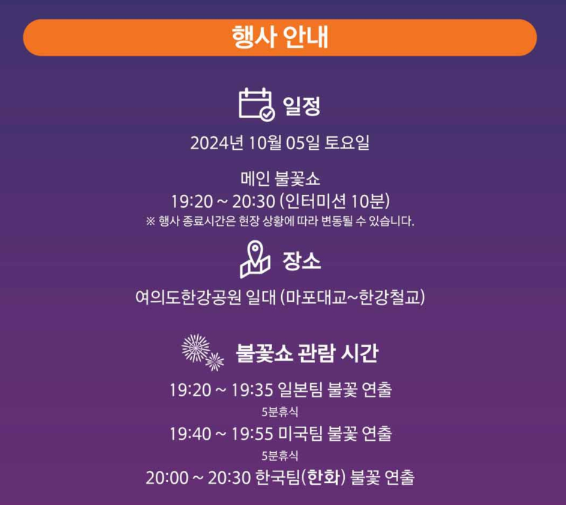 | 서울 여의도 불꽃축제 행사 명당 한강 공원 시간 장소 위치 준비물 지하철 (8) | 2024.10.05 |