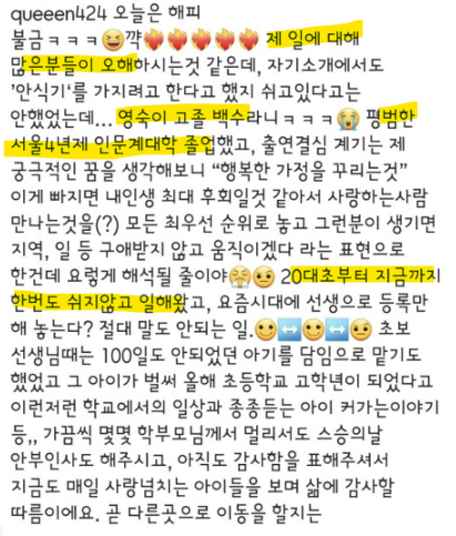 이와 관련해 영숙은 자신의 인스타그램을 통해 직접 해명에 나섰습니다. 그녀는 자신의 대학이 서울에 있는 4년제 인문계 대학이라고 밝혔어요. 하지만 그 이상의 자세한 정보는 공개되지 않았고, 커뮤니티에서는 "동국대가 아니냐"는 추측이 나오고 있긴 하지만, 정확한 학교는 아직 확실하지 않다고 합니다. 영숙은 이러한 루머에 대해 확실히 정리하고 싶었던 것 같아요.