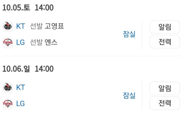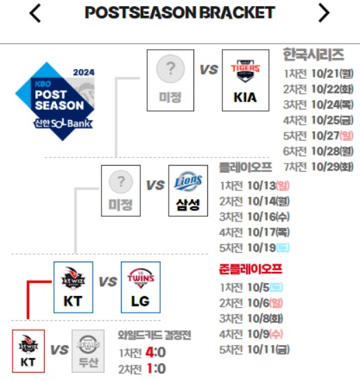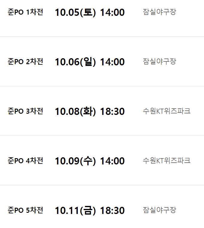 - 4차전: 10월 9일 (수) 오후 2시, 수원 KT위즈파크