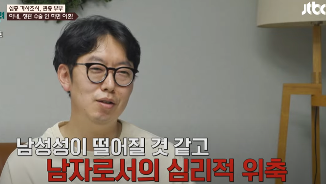 이 부부의 또 다른 갈등 요인은 남편의 정관수술 문제였습니다. 아내는 셋째 아이 출산 이후 피임을 위해 남편에게 정관수술을 권유했지만, 김현기 씨는 이를 거부하며 남성성이 떨어질 것을 두려워했습니다. 피임의 부담이 아내에게만 지워진다는 점에서 아내는 불만을 품게 되었고, 남편의 태도에 실망감을 느꼈습니다. 남편은 결국 비뇨기과를 방문했지만, 정관수술 대신 확대 수술에 관심을 보이며 부부 간의 갈등은 더욱 깊어졌습니다.