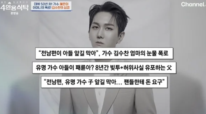 14년 전, 김수찬의 어머니는 가정 폭력으로 인해 세 아이를 데리고 위자료 없이 도망치듯 이혼을 선택했지만, 그 이후에도 전 남편의 만행은 멈추지 않았습니다. 그는 김수찬의 이름을 사용해 돈을 요구하거나 팬들에게까지 돈을 빌리기도 했고, 이는 김수찬의 가수로서의 경력에 큰 타격을 주었습니다.
