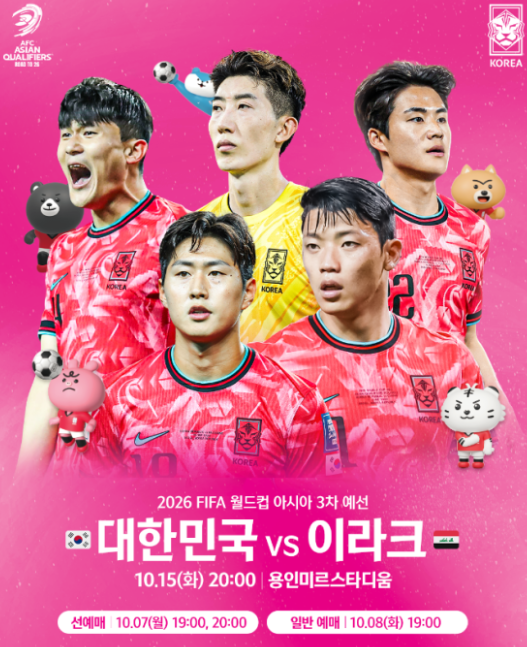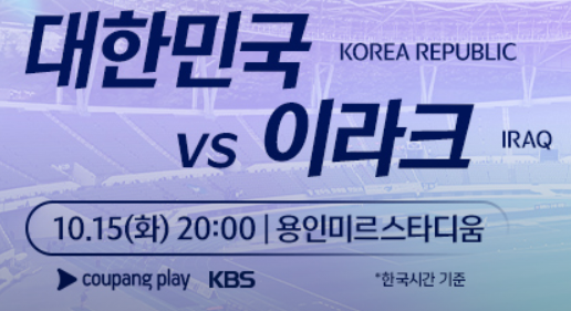 - 2024년 10월 15일 화요일: 한국 vs 이라크 (홈 경기)