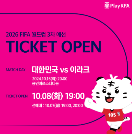 이제 많은 축구 팬들이 궁금해하는 이라크전 티켓 예매 방법을 안내해 드릴게요. 경기는 10월 15일 화요일, 용인 미르스타디움에서 오후 8시에 열립니다. 사실, 이 경기는 원래 서울월드컵경기장에서 열릴 예정이었으나, 잔디 상태가 좋지 않아 용인 미르스타디움으로 변경되었어요. 티켓 예매는 10월 7일과 8일에 시작되며, 세부 일정은 아래와 같습니다.