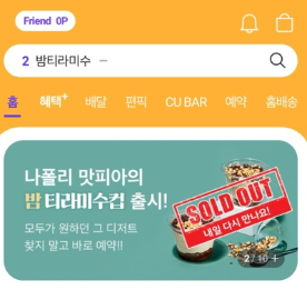 - 2. 앱을 열고 메인 화면에서 ‘밤 티라미수컵 예약’ 배너를 찾으세요.