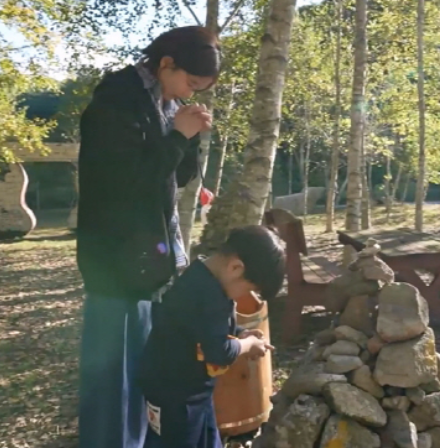 소도마을의 자작나무 숲에는 8개의 돌탑이 자리하고 있다고 합니다. 이곳에서는 소원을 빌 때, 한 가지 소원을 8번 반복해서 빌면 소원이 이루어진다는 속설이 전해진다고 하네요. 윤가이는 꼬마 친구와 함께 돌탑 앞에 서서 진지하게 소원을 비는 모습이 포착되었는데요, 그녀는 "이곳에 올 때마다 꼭 소원을 빌고 가는 것이 나만의 필수 코스"라고 밝히며, 그만의 작은 힐링 루틴을 시청자들에게 공개했습니다.