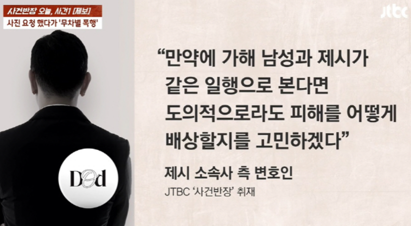 어제 저녁, 많은 이들에게 충격을 안겨준 사건이 있었습니다. 바로 JTBC '사건반장'에서 보도된 내용인데, 팬이 제시에게 사진을 요청했다가 일행에게 폭행을 당했다는 제보가 전해졌습니다.