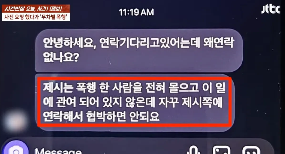 여기까지는 종종 일어날 수 있는 일입니다. 연예인도 사람이기 때문에 언제나 팬들의 요청에 응할 수는 없고, 스케줄이나 상황에 따라 거절할 수도 있죠. 하지만 문제는 여기서 끝나지 않았습니다. 제보자가 사건 현장을 벗어나려는 순간, 또 다른 남성이 다가와 그를 폭행하기 시작한 것입니다. 제보자는 주먹으로 얼굴을 맞고, 발길질까지 당했다고 말했습니다. 제시는 처음에는 이 상황을 만류했으나, 폭행이 계속되자 현장을 떠났다고 합니다.