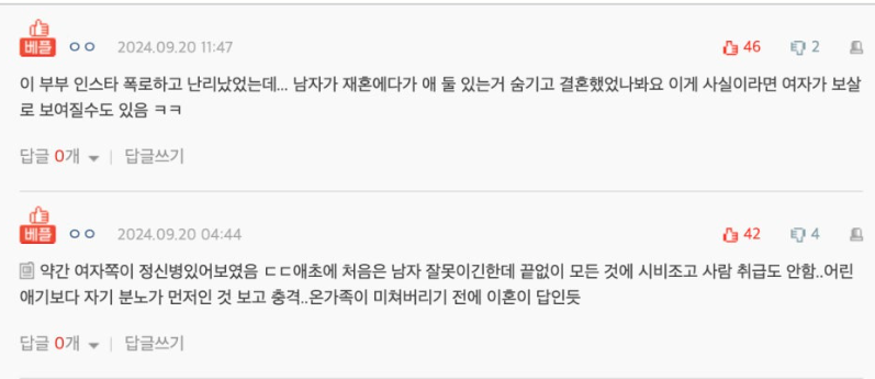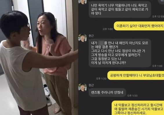 방송 중에도 두 사람의 논쟁은 끊이지 않았고, 방송이 끝난 후에도 남편 진현근이 자신의 SNS에 부부 간의 대화를 캡처한 사진을 공개하며 사적인 갈등이 드러나기 시작했습니다. 그 중에는 "내 아이인지 아닌지도 모르는 애랑 결혼했던 거, 다시 만난 너도 정상이 아니다"라는 충격적인 발언도 포함되어 있어 많은 이들을 놀라게 했습니다. 이를 통해 부부 사이의 감정적인 골은 더 깊어졌으며, 방송이 끝나기도 전에 그들의 결말은 이미 새드엔딩으로 기울어져 있었습니다.