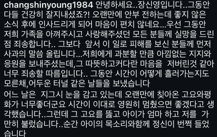 장신영은 인스타그램을 통해 팬들과 소통하고 있으며, 그녀의 계정은 @changshinyoung1984입니다. 그녀의 팬들은 앞으로도 그녀의 활동과 일상을 지켜보며 응원을 보낼 것입니다. 장신영과 강경준 부부가 힘든 시간을 이겨내고 다시 행복한 일상을 이어가기를 바랍니다.