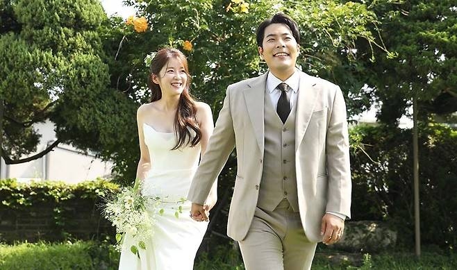 두 사람은 지난 7월 결혼 소식을 발표하며 웨딩화보를 공개했는데요, 그 모습은 단연 화제였습니다. 김해준은 블랙 턱시도를 입고 유쾌한 분위기를 자아냈고, 김승혜는 순백의 웨딩드레스를 입고 환상적인 비주얼을 선보여 많은 이들의 시선을 사로잡았습니다. 두 사람은 서로를 바라보며 밝게 웃는 모습으로 웨딩 화보 촬영을 마쳤으며, 그들의 사랑이 고스란히 담긴 화보는 팬들 사이에서 큰 화제가 되었습니다.
