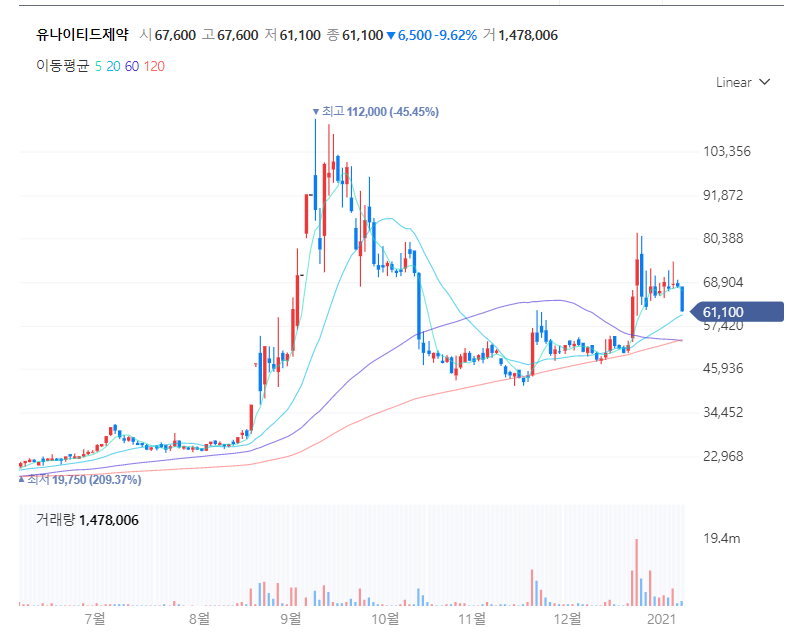 물론 이 유나이티드제약 해당 주도 마찬가지로 현재 과열상태의 주식시장이 펼쳐지고 있기 때문에 폭락하게 되면, 다시 회복하기에 상당한 시간이 소요될수있는점 참고바랍니다.