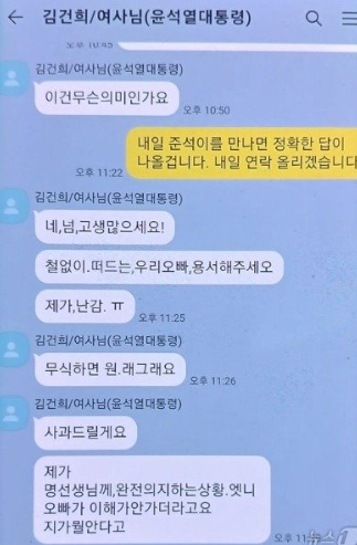 또한, 해당 대화는 윤석열 대통령이 국민의힘에 입당하기 전, 개인적인 차원에서 나눈 사적인 대화일 뿐이라는 해명을 덧붙였습니다. 하지만 이러한 해명에도 불구하고, 이 메시지 내용이 정치적 논란으로 이어지면서 여러 의견이 나오고 있는 상황입니다. 김건희 여사는 "철없이 떠드는 우리 오빠 용서해주세요"라며, 명씨에게 자신의 오빠에 대해 불편한 마음을 털어놓는 듯한 대화를 이어갔습니다. 이 메시지를 두고 정치권에서는 그 오빠가 윤 대통령인지 여부에 대해 계속해서 논란을 제기하고 있습니다.