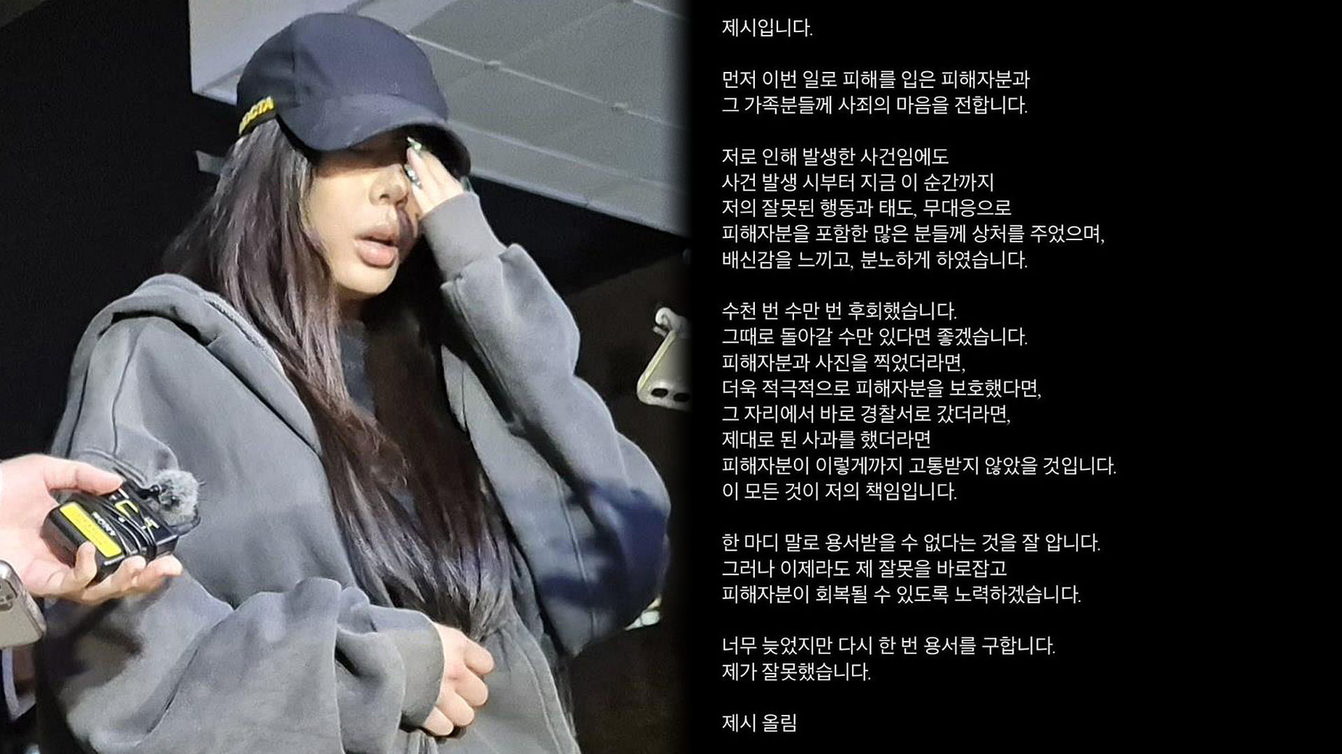 제시는 이후 폭행 가해자는 자신의 일행이 아니라고 해명했지만, 여론은 폭행을 방관했다는 비난이 제시에게 쏟아졌습니다.