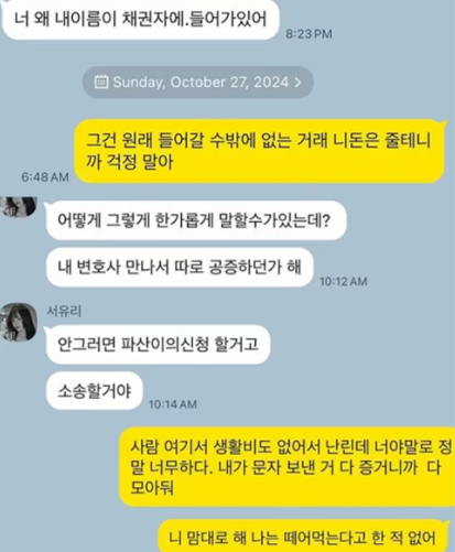 서유리 씨는 “변호사를 통해 공증을 진행하거나 파산 이의 신청과 소송을 제기할 것”이라고 밝히며 강력한 대응 의지를 보였습니다.