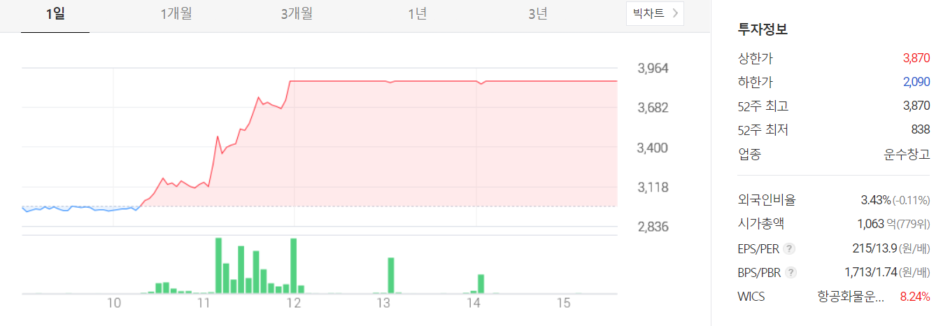 KCTC는 종합물류와 탄탄한 재무상태, 이것도 쿠팡 관련주로 상한가를 기록했습니다.