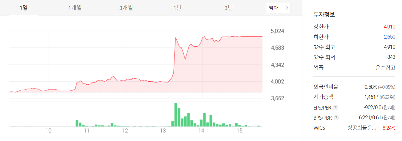 KCTC는 종합물류와 탄탄한 재무상태, 이것도 쿠팡 관련주로 상한가를 기록했습니다.
