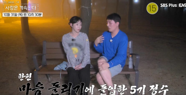 하지만 드디어 5기 정수는 18기 정숙을 불러내어 그간 쌓아왔던 속마음을 드러내며 고백을 하게 되는데요, 이번 고백 장면은 무척 인상적입니다. 정수는 18기 정숙과 15기 영호가 데이트를 했던 장소를 언급하며 “여기서 그날 앉았었지?”라고 말을 시작하며 자신이 그 자리에 앉아 마음을 정리하는 시간도 가졌다고 고백합니다. 이렇게 진지하게 이야기를 풀어가는 그의 모습에 18기 정숙도 진심을 느끼며 이야기에 집중하게 됩니다.