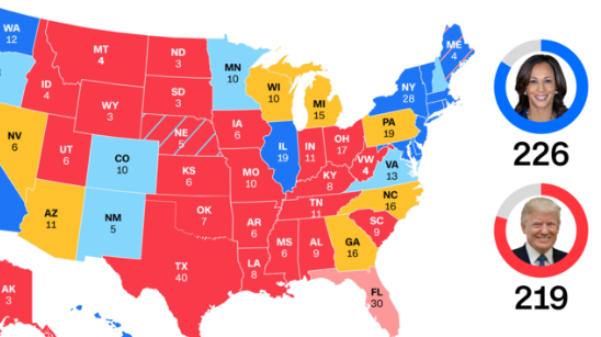 2024 미국 대선은 해리스와 트럼프 간의 팽팽한 승부로 인해 최종 결과 예측이 어려운 상황입니다. 투표가 끝난 후 한국 시간으로 11월 11일에서 19일 사이에 최종 당선자가 발표될 가능성이 높습니다.