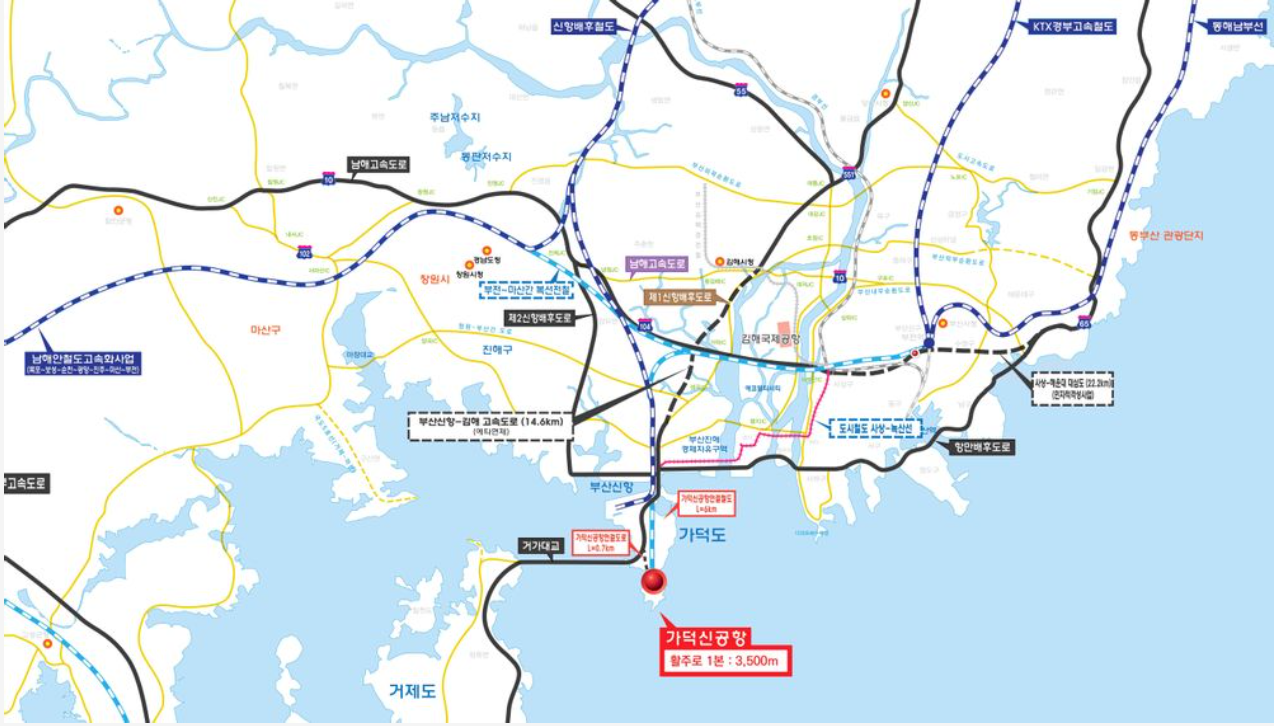 이러한 새로운 주제들은 정치적으로도, 경제적으로도 사용할 수 있는 좋은 소재이기 때문입니다. 현재는 아래 그림과 같이 가덕신공항과 관련된 연계 교통망이나 차후 진행수준까지 모두 나온상태이기에 더욱주목할수밖에없는 관련소재같습니다.