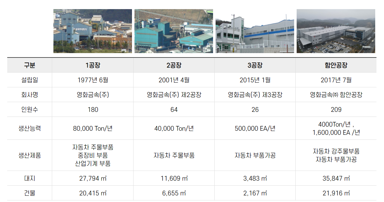 영화금속은 위와같이 여러곳에 공장을 소유하고 있으며, 특히 자동차 부품제공과 같은 부분에서 우수함을 나타내고 있어, 굳이 가덕도 신공항 관련주가 아니라 자동차 부품 관련주 테마서 섞여서 상승세를 보일때도 강세를 보일수 있는 끼를 가지고 있는 종목이라고 할수있습니다.