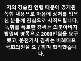 명태균이 밝힌 사과문과 강경 대응