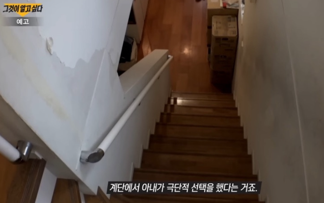 이후 아이를 데리고 2층 방으로 피신했으며, 30분 정도 지나 다시 아래층으로 내려오자 아내는 자신의 재킷을 이용해 계단 난간에 목을 맨 채 숨져 있었다고 설명했습니다.