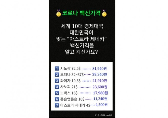 실제로 인터넷상에서, 그리고 SNS 상에서 이러한 말들과 소문들이 많이 돌았었습니다. 하지만, 결론부터 말씀드리면 이는 가격과 백신의 효능과는 비례하지 않는다는겁니다.