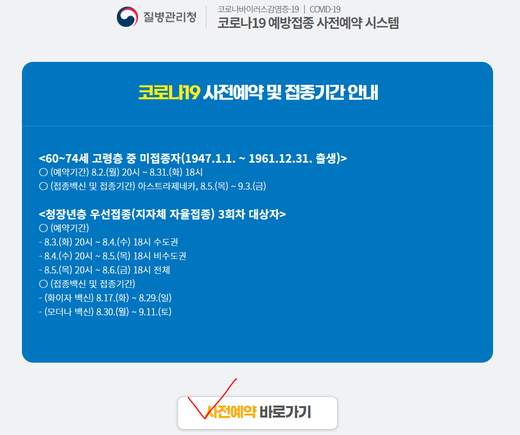 - 연령대별 추가예약 기간 : 8월19(수)~21일(금)