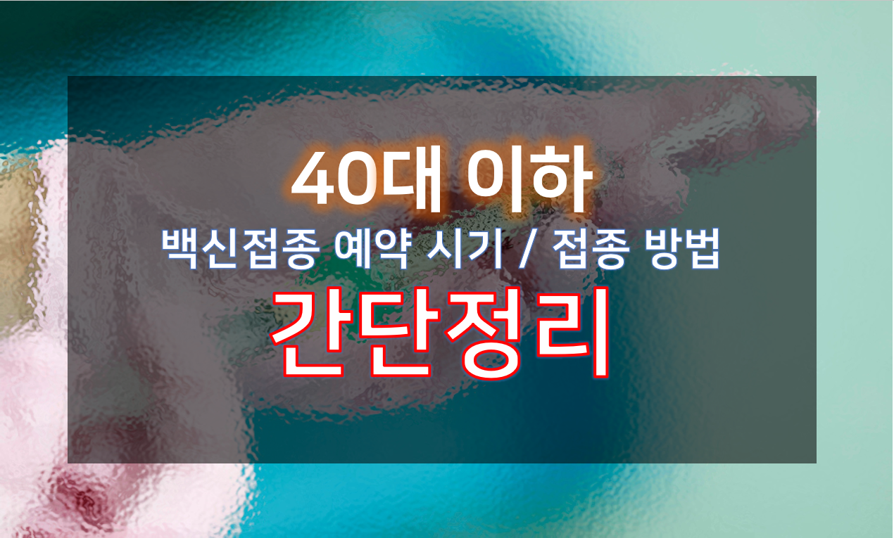 먼저, 40대 이하의 코로나 백신 접종의 예약에 대한 시기나 방법에 관한 글을 읽고 보셔도 좋고,