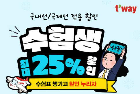 티웨이항공을 비롯한 여러 항공사들이 수험생 할인 프로모션을 진행 중이에요. 이번 기회를 놓치지 말고 알찬 여행을 준비해 보세요!