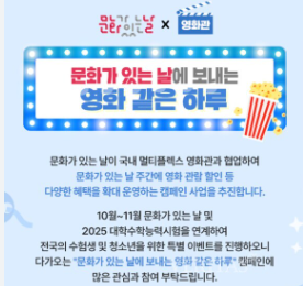 CGV는 11월 14일부터 30일까지 수험생에게 7000원에 영화를 관람할 수 있는 혜택을 제공합니다. 여기에 매점 콤보도 50% 할인된 가격에 이용할 수 있으니, 팝콘까지 챙겨서 여유롭게 영화 한 편 감상해 보세요.
