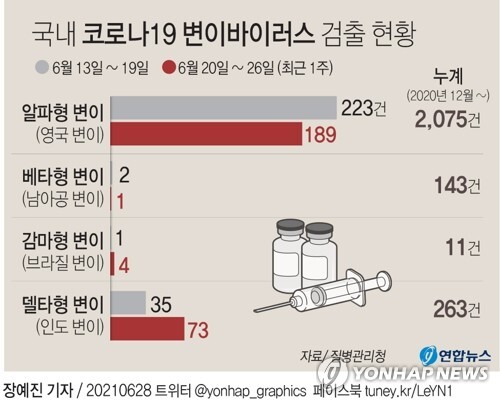 중앙방역대책본부에 따르면, 최근 1주동안 추가 확인된 변이바이러스는 2,641건이라고 합니다.