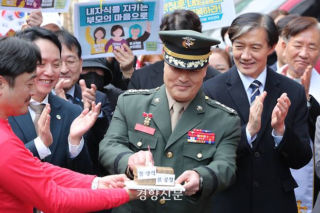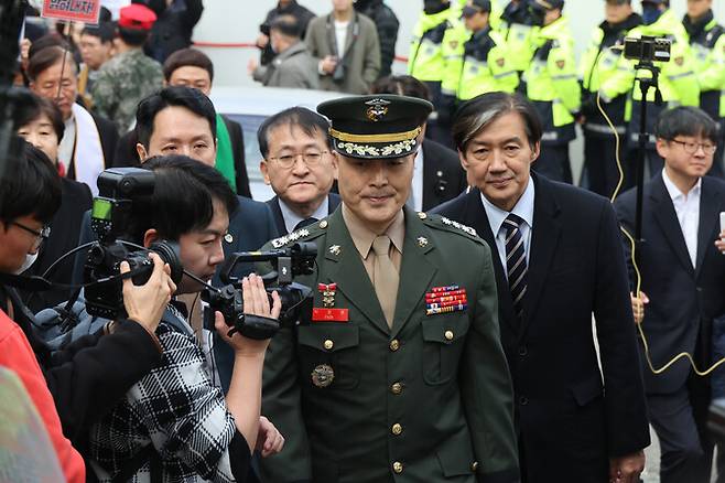 군사 재판에서 뜨거운 논란을 불러일으키고 있는 박정훈 전 해병대 수사단장의 사건이 21일 서울 용산 중앙지역군사법원에서 열렸습니다.