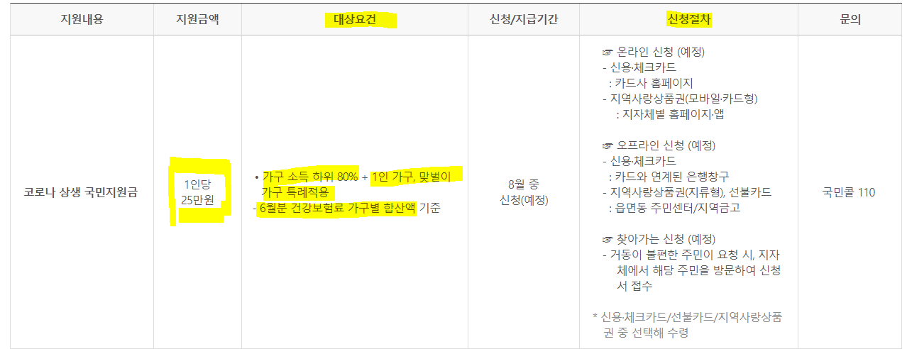 그결과 1인가구, 맞벌이가구는 특례적용이 되고, 전국민 80% 가량의 국민들에게 1인당 25만원씩 코로나 상생 국민지원금을 지급할 예정이라고 합니다.