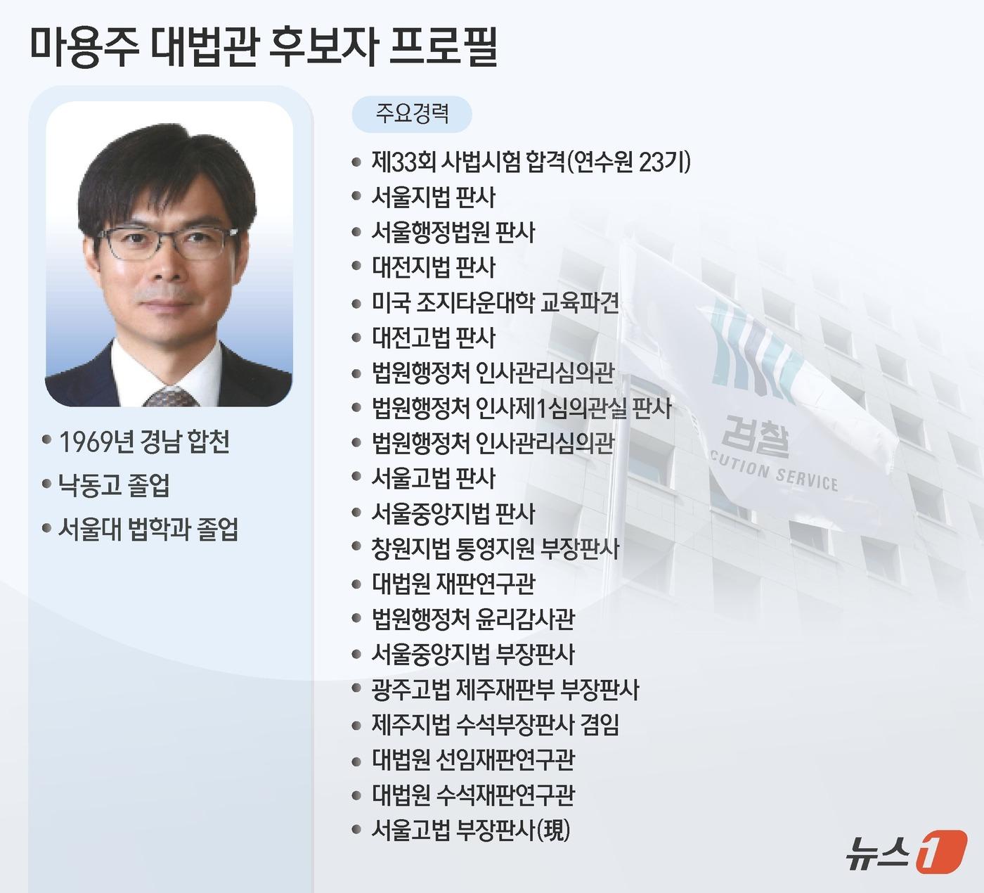 조희대 대법원장은 마용주 부장판사가 국민의 재판받을 권리를 충실히 보장할 수 있는 법률적 전문성과 공정한 판단력을 갖추었다며, 대법관으로서 적합한 인물이라고 평가했습니다.