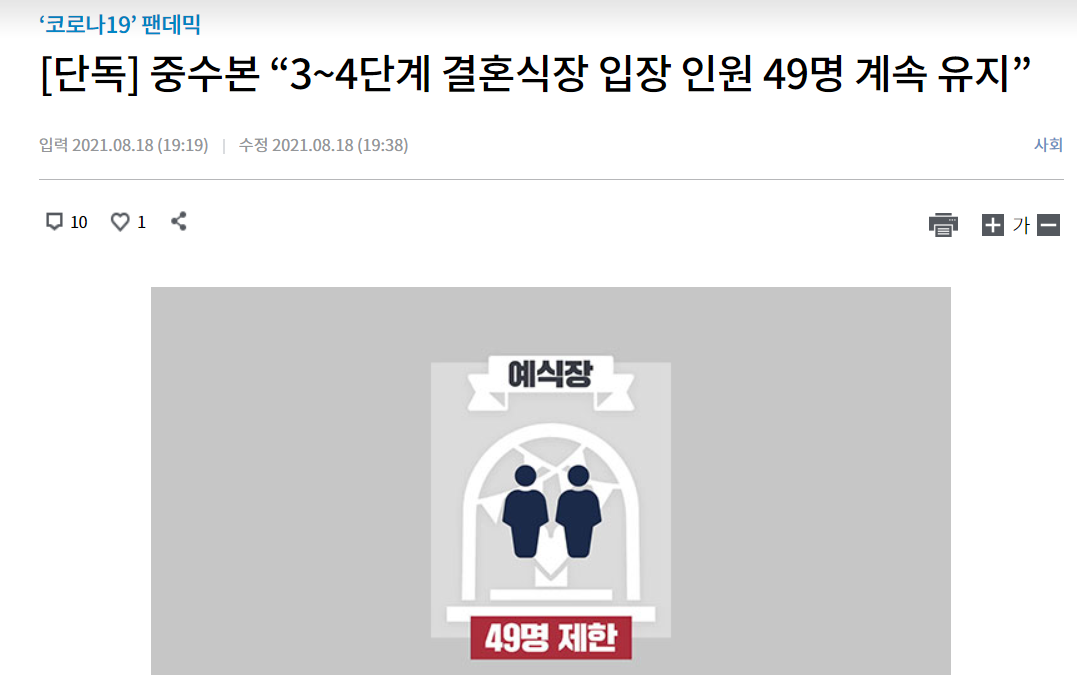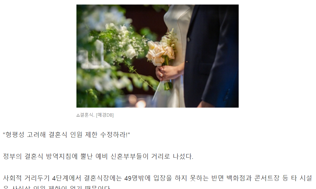 1. 코로나 4단계 결혼식 형평성에 어긋난다?