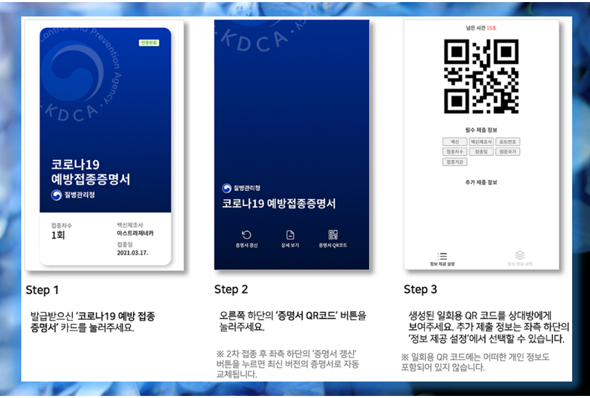 국민의 백신 접종자 수가 이렇게 증가함에 따라서, 정부에서도 추후에 지속적으로 코로나를 관리하면서 부스터샷을 진행하고, 위드코로나와 같은 형태로 전환할 수도 있다는 의사를 비친것으로 보입니다. 그래서 오늘은 빠르고 정확하게 백신접종을 증명하는 것과 관련하여 적어볼 예정입니다.
