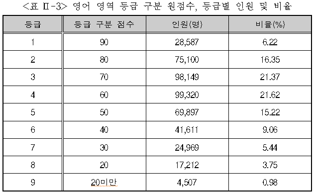 - 영어: 원점수 기준 1등급 90점, 2등급 80점, 3등급 70점
