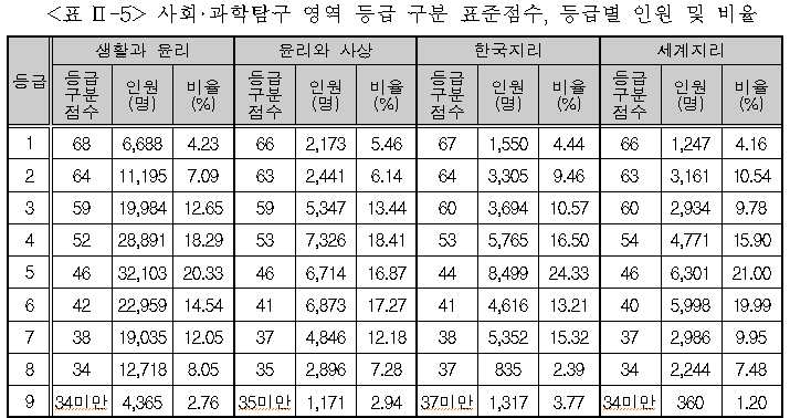 - 생윤: 1등급 41점, 2등급 37점, 3등급 32점