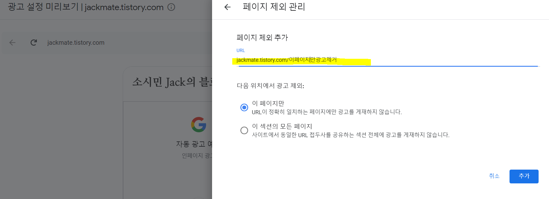 저는 저품질 통누락이 나서 블로그가 박살나기 이전에, 어떤분이 돌아가신 내용을 다루거나, 상당히 위중한 상태를 다루는 이야기 등, 광고를 넣고 싶지 않은 글들이 있는 경우 구글 애드센스 광고에서 제외를 했습니다. 아래 애드센스 광고수정에 들어가서 광고를 넣고싶지 않은 링크를 추가하는 기능입니다.