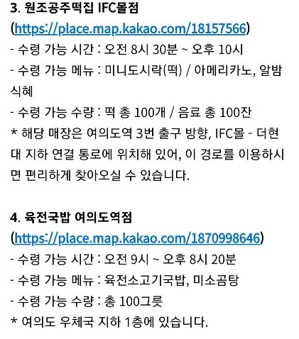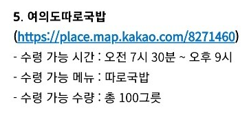 제공 메뉴: 미니 도시락(떡), 음료 (100개/잔) - 육전국밥 여의도점: 서울 영등포구 여의나루로 60