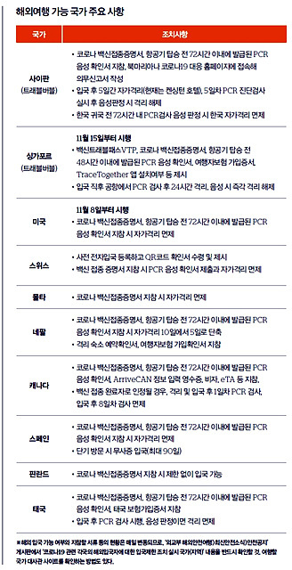 2021년 11월 부터 위드 코로나상황이 펼쳐지면서 많은 것들이 바뀌었습니다. 코로나 상황이 조금씩 개선 될 여지가 보이면서, 화이자 아스트라제네카 모더나 등 백신과 2차 3차 접종등으로 조금씩 상황이 좋아지는 중인 것을 보입니다. 그와중에서 많은 분들께서 궁금해하시고, 하고 싶어하셨던 여행과 관련된 사항을 업데이트 해보려합니다. 저또한 해외에서 살다오기도 해보고, 해외여행을 가고 싶었던 곳이 상당히 많았기 때문에, 11월부터 해외여행 가능한 나라에 대해서 관심이 상당히 커지고 있습니다.