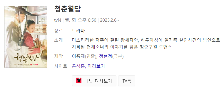 그리고 원래는 tvN 드라마 이지만, 티빙에서도 스트리밍을 진행하고 있다고 합니다.