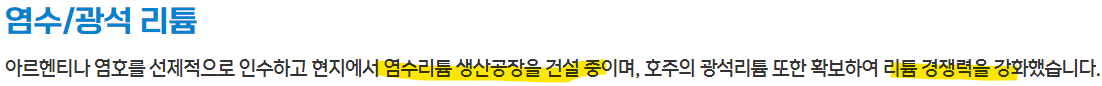 또한, 포스코그룹은 철강 사업 이외에도 미래 성장 동력을 찾기 위해 다양한 사업에 뛰어들고 있습니다. 특히 최근에는 2차전지, 리튬, 양극재 사업에 집중하고 있어 이들 분야에서의 성장 가능성이 큽니다. 또한, 미국 IRA(인플레이션 감축법)의 본격 시행으로 인해 철강 원재료 수급과 양극재 등 다양한 부분에서 탈중국화 요구가 나오고 있는데, 이에 대해 포스코그룹은 국내에서 수직계열화된 생산체계를 구축하고 있어 이러한 수요를 충족시킬 수 있을 것으로 예상됩니다.