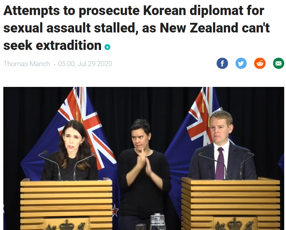 즉, 한국정부는 현재 뉴질랜드 정부에서 기소하고, 그에 응당하는 처벌을 하는 방식에 동의하지 않는것 같습니다.